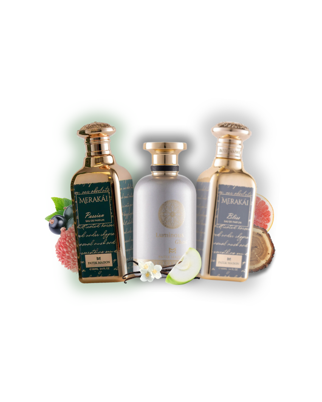 - Luminous Ghost – A radiant blend of bergamot, gardenia, and coriander gives way to a heart of soft vanilla and crisp apple, grounded by white musk, warm woods, ambergris, and tonka bean.
